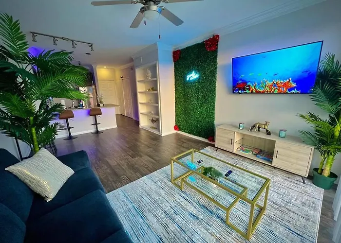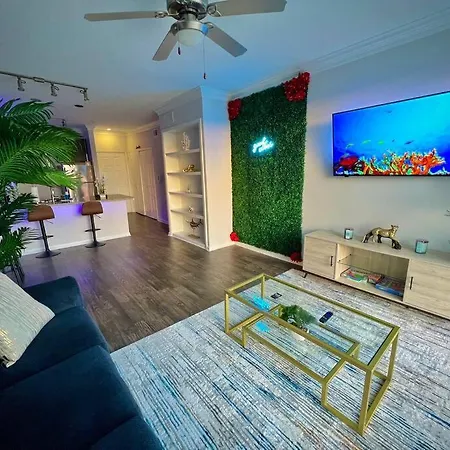 Tropical Breeze - 2Br/Nrg/Medical Center/Galleria es el lugar perfecto para disfrutar de una estancia cómoda y relajante en Houston. Este encantador apartamento cuenta con dos acogedoras habitaciones equipadas con aire acondicionado, proporcionando un ambiente fresco y agradable. Además, la cocina está totalmente equipada con nevera, horno y lavavajillas, lo que permite preparar deliciosas comidas durante tu visita.
